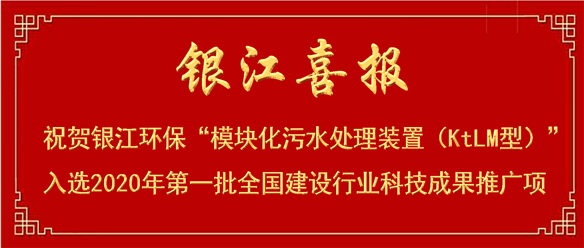 銀江環保“模塊化污水處理裝置(KtLM型)”列入全國建設行業科技成果推廣項目