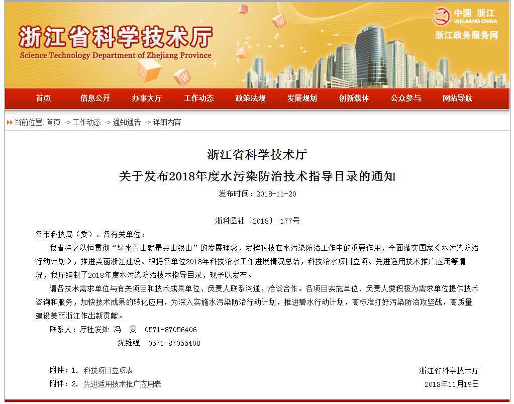 恭喜銀江環保榮獲政府資助30.5萬,其中銀江環保水處理高新技術研究開發中心獲西湖區2018年科技經費資助30萬,一體化高效能污水處理器發明專利獲西湖區科技資助0.5萬。
