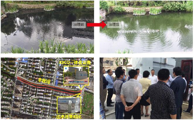椒江區(qū)排水集團(tuán)引進(jìn)我司開發(fā)的2500噸/天KtCQ超速凈化一體機(jī)設(shè)備,該設(shè)備為專利產(chǎn)品,通過物理化學(xué)方法進(jìn)行高速絮凝沉淀技術(shù),具有除磷脫氮作用,能夠在2-3天內(nèi)使河道快速變清,快速去除懸浮物SS、COD、總磷及部分氨氮,是當(dāng)下消劣利器。該設(shè)備具有處理水量大,設(shè)備占地小、可移動(dòng),解決大流量雨污合流排污口入河問題。