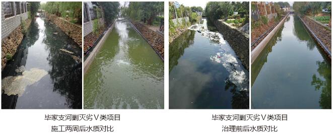 通過截污納管、底泥改良、增氧曝氣、生態(tài)治理,逐步恢復(fù)河道的水體生態(tài),消除黑臭,2018年達(dá)到 Ⅳ類水標(biāo)準(zhǔn)。