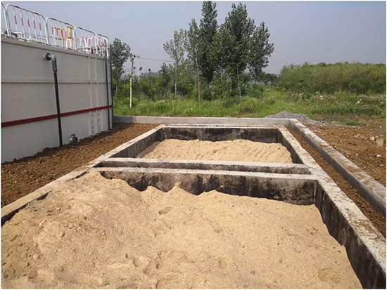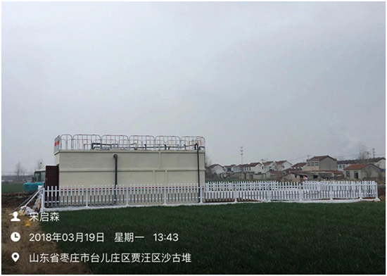 (5)沙古堆村:該終端為地上式,設計污水處理水量為50噸/天,于2017年12月19日進場施工,2018年1月23日設備安裝調試完成,經處理后生活污水達到《城鎮污水處理廠污染物排放標準》(GB18918-2002)一級A標準,出水外排,終端總占地面積187平方米。