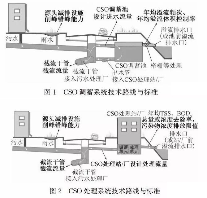 在美國,以水環(huán)境質(zhì)量為目標,依托從國家到各州的法規(guī)、NPDES許可制度以及CSO長期控制規(guī)劃,一般以年均溢流頻次、年均溢流體積控制率作為CSO調(diào)蓄系統(tǒng)的控制標準,以年均TSS、BOD5總量或濃度去除率、糞大腸桿菌等污染物指標的濃度排放限值作為CSO處理系統(tǒng)的控制標準。