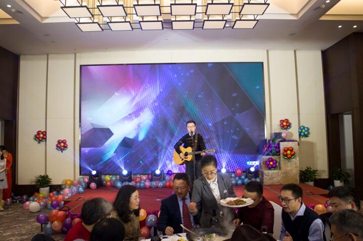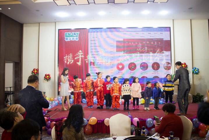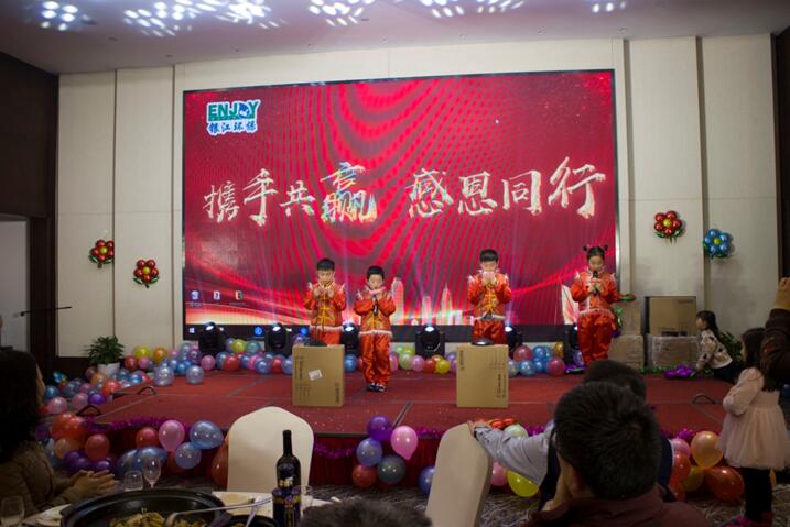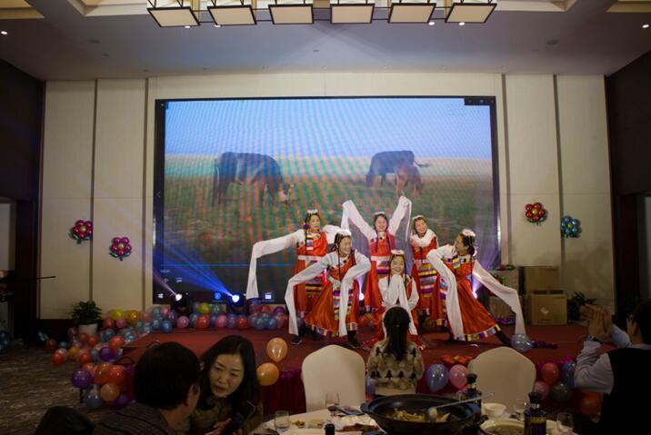 晚餐和文藝節(jié)目同時(shí)進(jìn)行,舞蹈《CC哩》拉開(kāi)晚會(huì)序幕,銀江吉祥寶寶如意也閃亮登場(chǎng)。隨后,歌曲、彈唱、藏舞、合唱、三句半、魔術(shù)、游戲、抽獎(jiǎng)、優(yōu)秀員工頒獎(jiǎng)等穿插進(jìn)行。