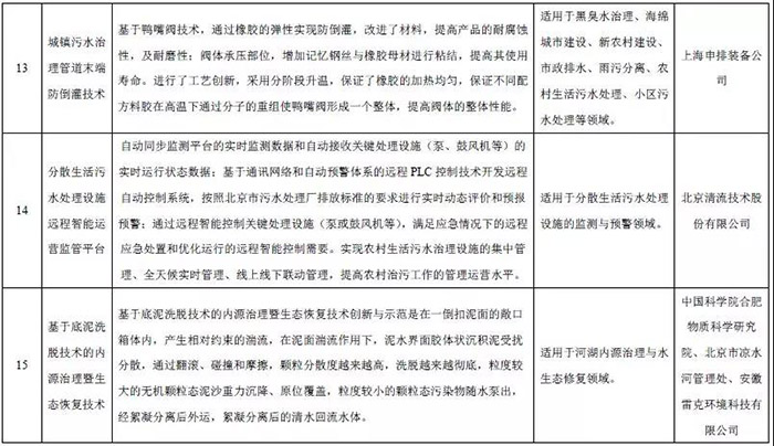 技術目錄顯示,來自北控水務的城鎮排水系統智慧運營管控平臺,北排集團城市污水好氧高密度微生物顆粒技術和基于厭氧氨氧化功能菌群優化的污水處理新技術,桑德環境的SMART-PFBP 多級生物接觸氧化技術,碧水源的“MBR-DF”雙膜技術和智能一體化污水凈化系統(CWT),銀江環保的KtLM+KtIC一體化組合工藝等21項水污染防治技術位列其中。