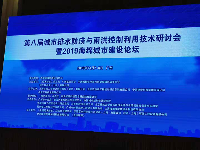 2019年11月7日上午,“第八屆城市排水防澇與雨水控制利用技術研討會暨2019海綿城市建設論壇”在廣州順利召開。