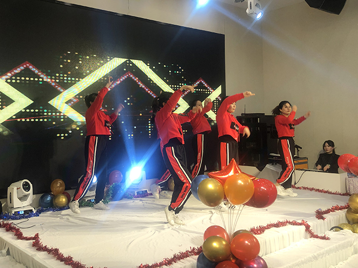 新年酒會和文藝節目同時進行,歡快的開場舞《護花使者》拉開晚會序幕,隨后,優秀員工頒獎,歌曲、舞蹈、彈唱、游戲、抽獎等穿插進行。