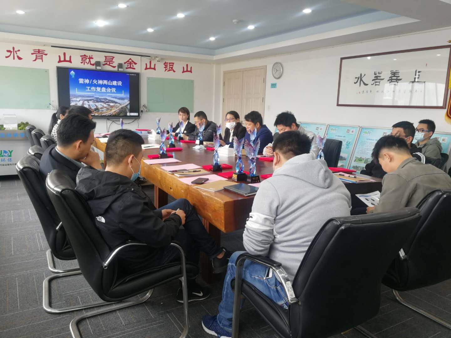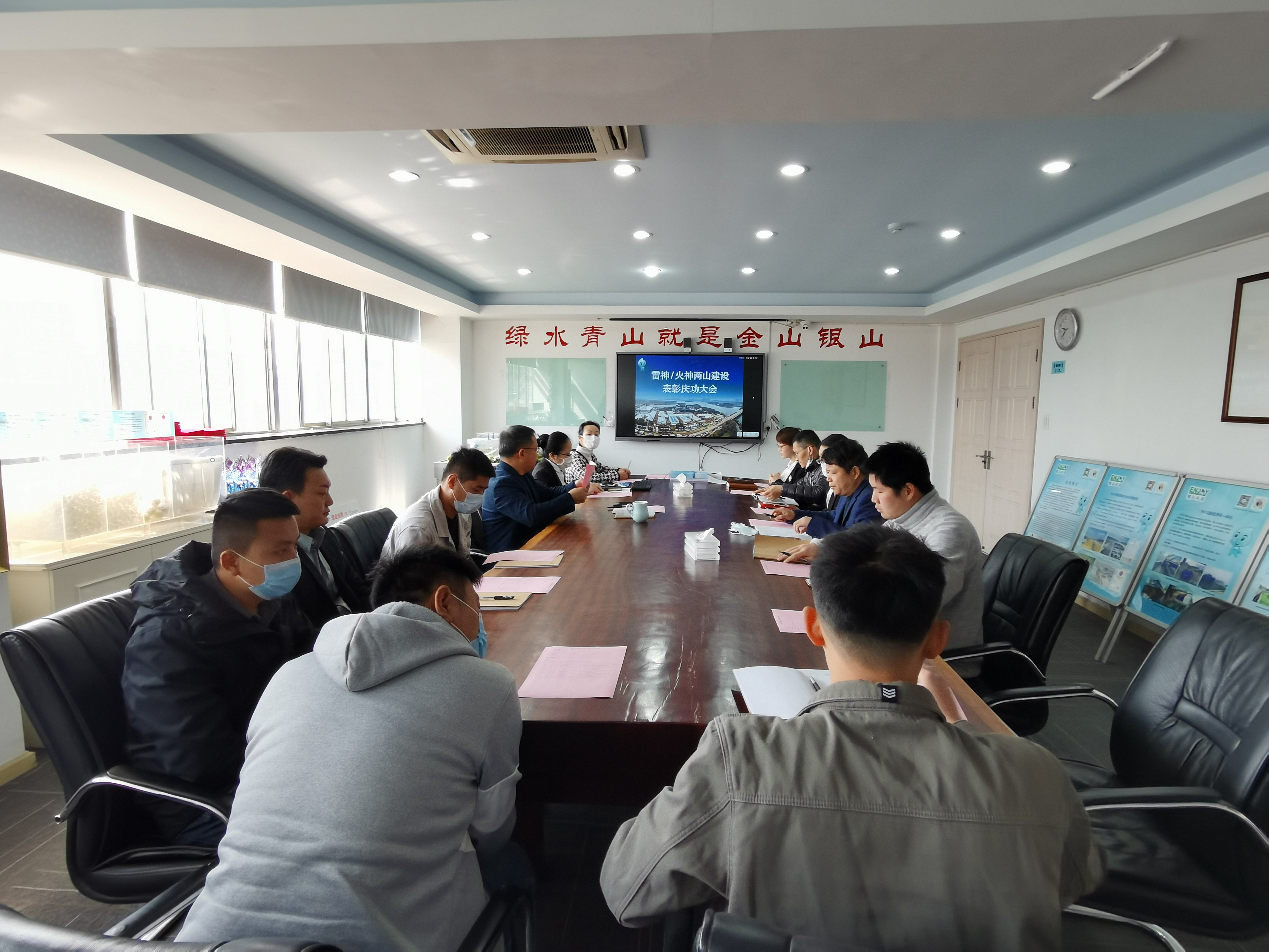 4月7日,銀江環保召開戰”疫“先鋒表彰會,同期召開雷火兩山項目復盤會。