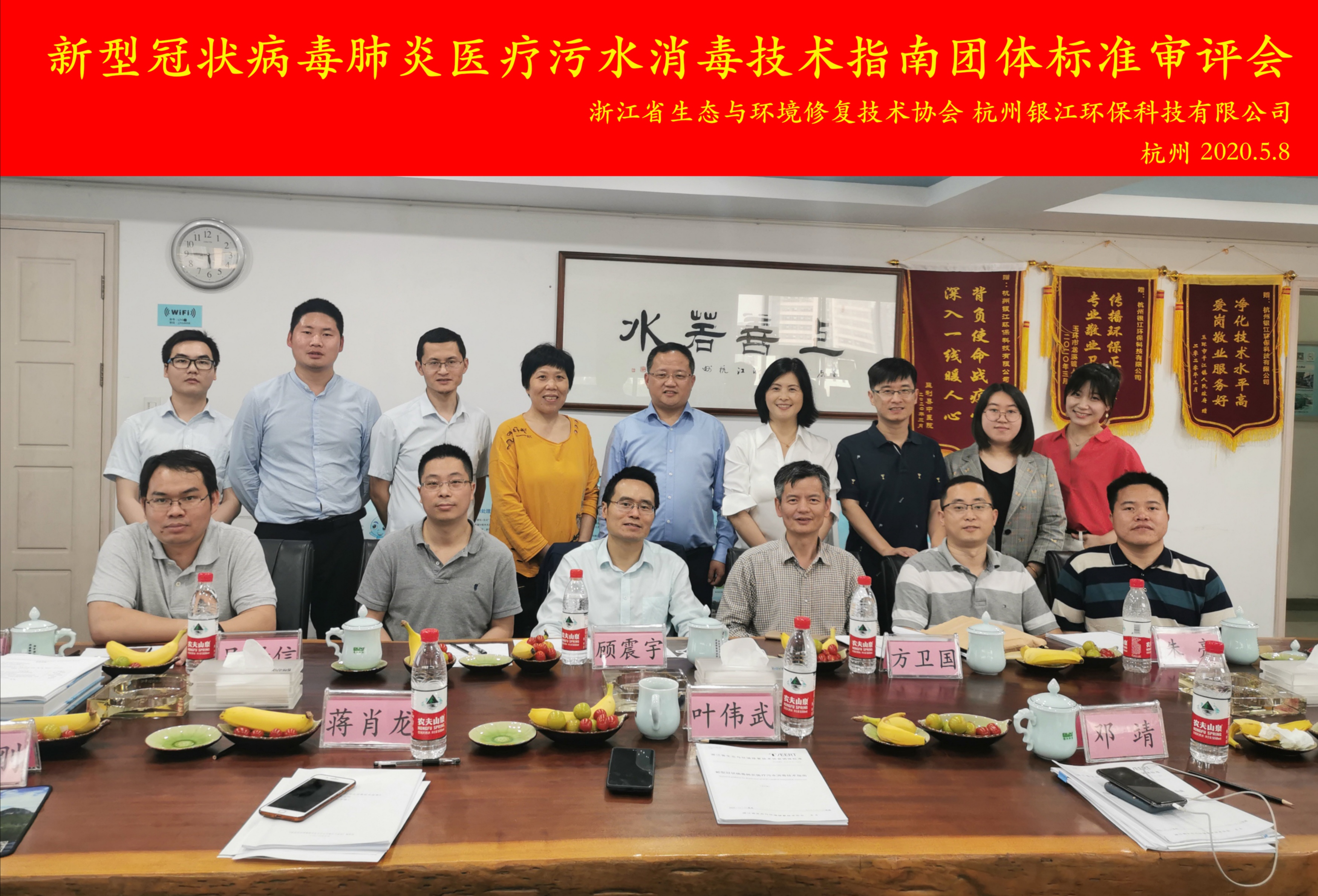 2020年5月8日,浙江省生態與環境修復技術協會組織召開了由杭州銀江環保科技有限公司牽頭起草的《新型冠狀病毒肺炎醫療污水消毒技術指南》團體標準制訂審評會。本次審評會的審評組專家由來自高校、科研、設計與標準技術管理等部門專家組成,包括浙江省環科院顧震宇教高和徐志榮博士、浙江省現代建筑設計研究院吳賢信主任、紹興市排水公司葉春芳高工、浙江省標準化研究院朱東峰高工、浙江大學環資院朱亮副教授、杭州蕭山環境集團方衛國總工、浙江工業大學鄧靖副教授等多位業內專家組成。浙江省生態與環境修復技術協會胡芬秘書長以及協會郭維燕和戴仲咪,銀江環保葉偉武董事長、技術總監仝武剛、工程部主管蔣肖龍以及洪遠康參加。