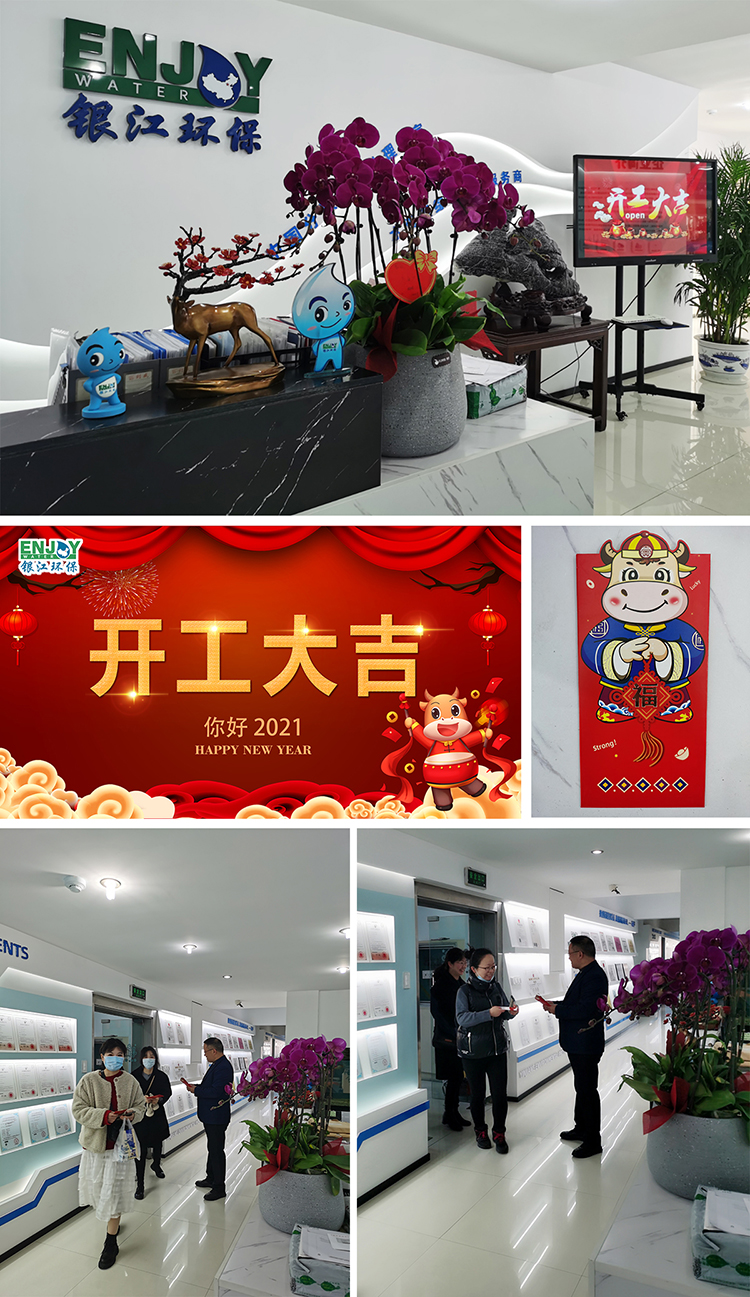 2021年大年初八,銀江環(huán)保開工第一天,董事長葉偉武一早來到公司迎接每一位到崗員工,為大家送上開門紅包和新年祝福。“新年快樂,大吉大利”、“開工大吉,牛氣沖天”……相互間的祝福聲此起彼伏。新年第一天,公司到崗率百分百,大家都回到了各自崗位,以奮斗的姿態(tài)確保開好局、起好步,力爭“開門紅”,擼起袖子加油干!