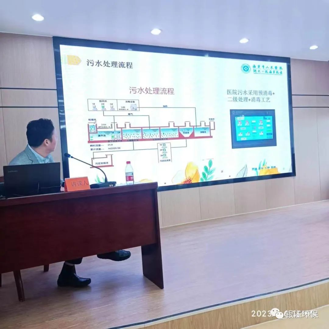 銀江環(huán)保技術(shù)總監(jiān)仝武剛(原浙江省環(huán)科院高工)作為技術(shù)專家進行《醫(yī)院污水處理工藝講解》主題培訓(xùn)。