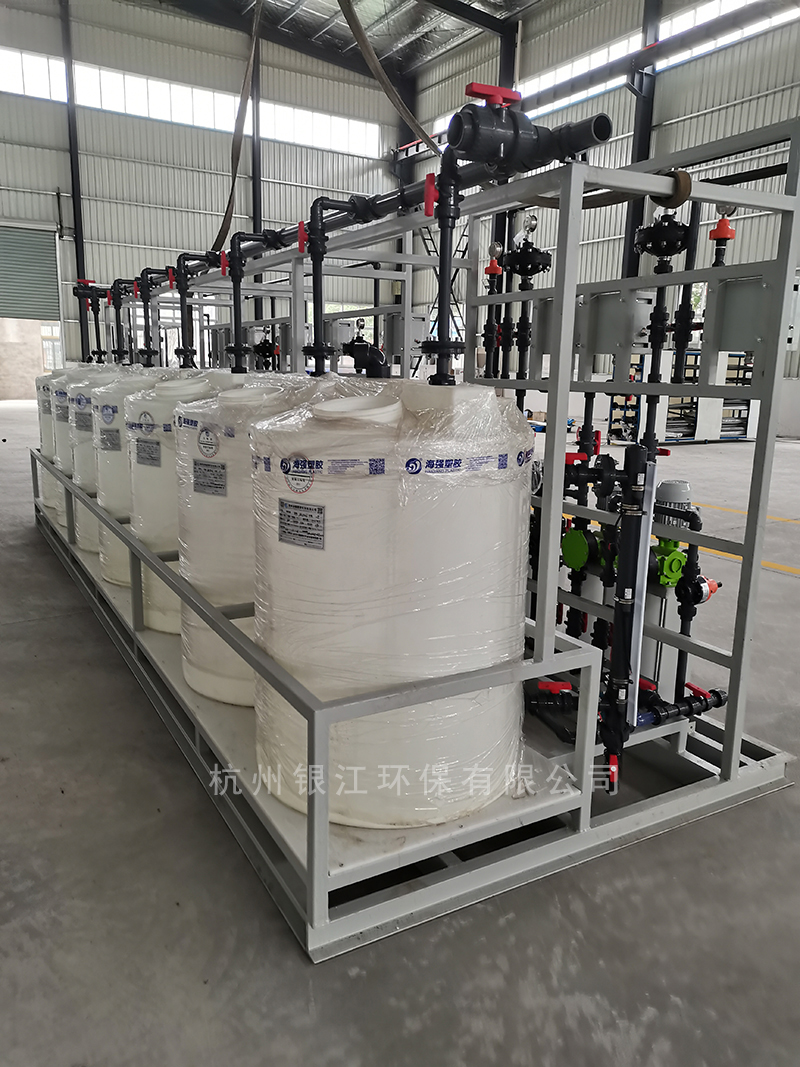 桶體、加藥泵、電控箱和管件集成安裝在架體上,結(jié)構(gòu)緊湊,安裝運輸方便;