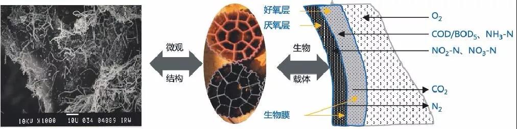 KtIC一體化污水處理設備,采用多級式MBBR & SBBR組合工藝,結合國內外先進的高效溶氧裝置、高效流化傳質系統與均質布水系統,通過培育附著在比表面積超過800 m2/m3的BIO-FORM®納米生物載體上的混合兼性菌種,構成BIO-NET生態系統。其以革蘭氏陽性芽孢桿菌(Bacillussubtilhls)為主、光合細菌 (Photosyntheticbacteria)、硝化、反硝化細菌等混合菌劑為輔的高效菌體,高效降解污/廢水中的總氮、 COD及氨氮等污染物,具有高效、耐沖擊、施工簡便、占地少等技術優勢。
